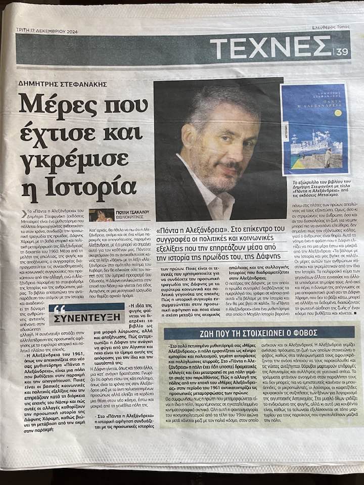 Συνέντευξη στην εφημερίδα ΕΛΕΥΘΕΡΟΣ ΤΥΠΟΣ - Πάντα η Αλεξάνδρεια - «Μέρες που έχτισε και γκρέμισε η Ιστορία»